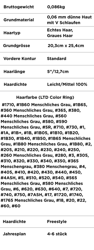 Im Preis enthalten ist dein individuelles Echthaar-System in Standardgrösse oder als Massanfertigung – bereit zur Anbringung. Die Haare sind bewusst etwas länger, damit du sie nach dem Aufsetzen beim Friseur deines Vertrauens in deine Wunschfrisur schneiden lassen kannst. Das kann jeder normale Friseur – du zahlst also nur den üblichen Haarschnitt und keine überteuerten Studio-Preise mehr. Zubehör wie Kleber oder Reiniger verkaufen wir nicht, empfehlen dir aber gerne die besten und günstigsten Produkte extern.